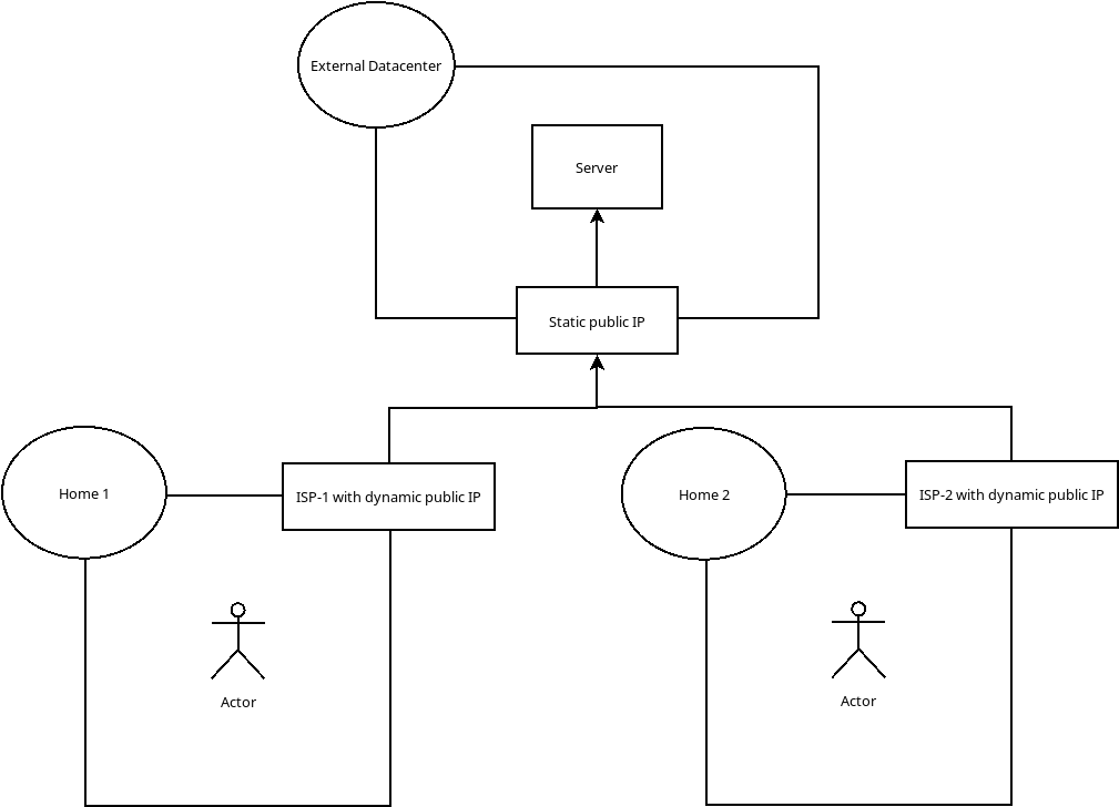 - Since IPs don't change very often and I have two different ISP, the probability that both of them change at the same time is very low. So if one IP changes and I lose access to my server I can go the second home and update the configuration accordingly.