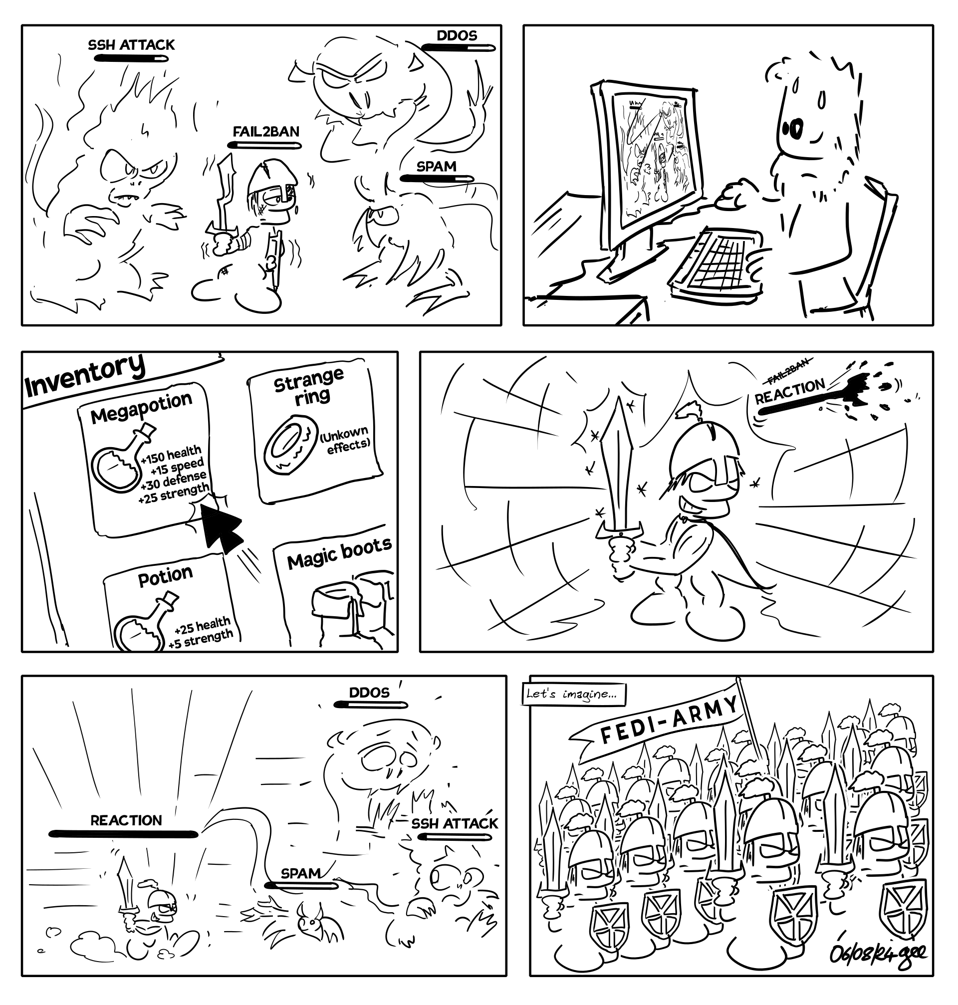 As a result, I lost access to my server for days. In the meantime, I was looking for a more robust design. That's how fail2ban came back to my mind and even better I remembered that one person from the CHATONS Picasoft was working on the perfect tool for me: reaction.