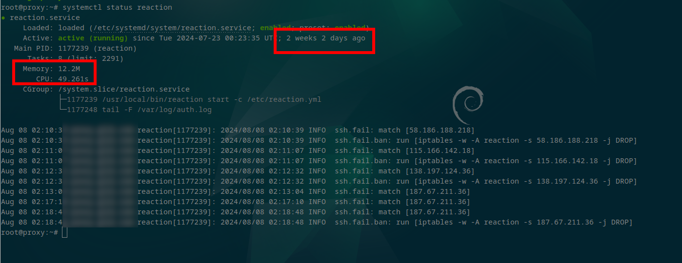 Well, for two main reasons I decided to use reaction instead of fail2ban: